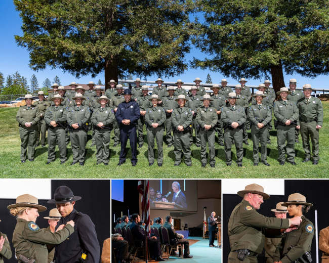 After spending 32 weeks in the academy, the cadets received their badges and formally became State Park Peace Officers with their family, friends, and department staff serving as their audience both in person in Paradise, California and remotely.
