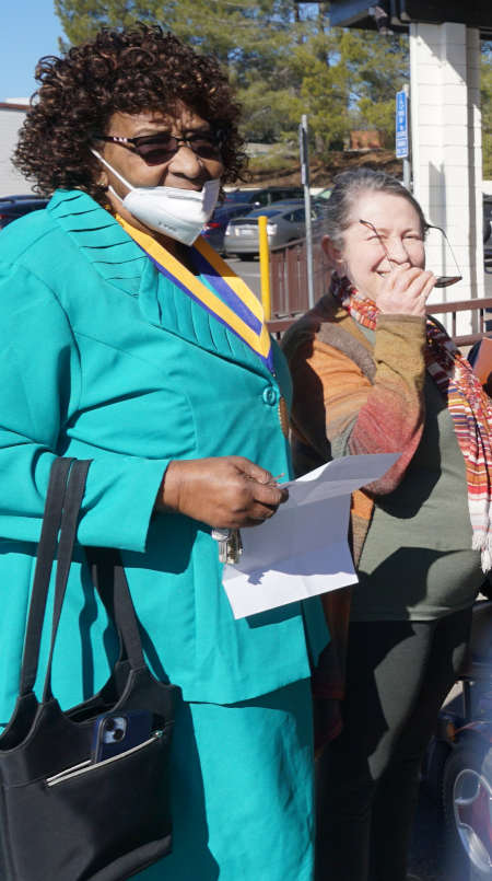 Mayo was joined by Bessie Bell, branch treasurer and Legal Redress Chair; Lynette Kirkwood, branch executive member; Aqeela Markowski, life member and past president; David D. Smith, the Cal-Hawaii NAACP State Conference Area director; Ida Johnson, Cal-Hawaii NAACP State Conference assistant secretary; James Black, NAACP member; Greta Zeit, NAACP Lake County Branch secretary; and Andrew Kucer, Lamont Kucer’s father.