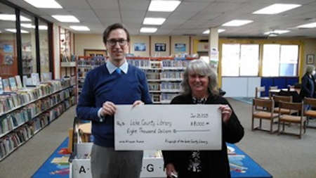 As a result, President Debbie Zacharisen was able to present County Librarian Christopher Veach with a check for $8,000 at the Jan. 25 meeting of the Friends.
