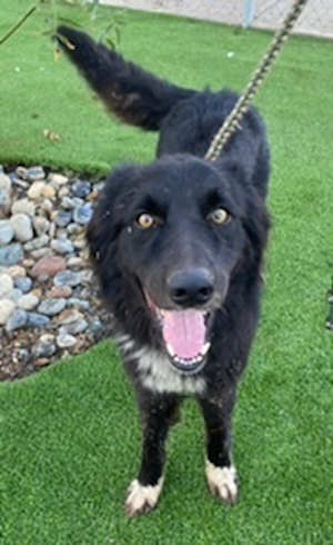 Among the dogs available is Roman, a 4 year old border collie-German shepherd mix with a black and white coat. He has been neutered.