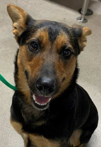 This 1-year-old female German shepherd has a black and tan coat.