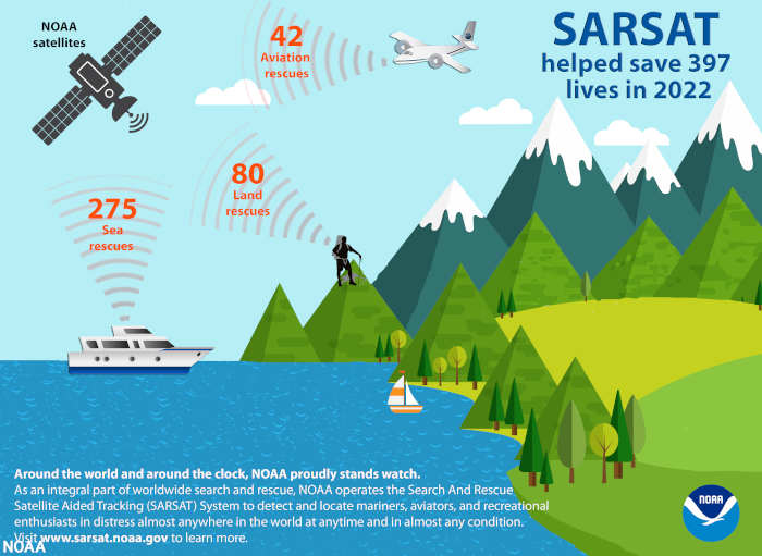 “The value of NOAA satellites goes well beyond forecasting,” said Steve Volz, Ph.D., assistant administrator for NOAA’s Satellite and Information Service. "The life-saving ability of SARSAT is a credit to the teamwork with the U.S. Coast Guard, the U.S. Air Force NASA and our international partners.”