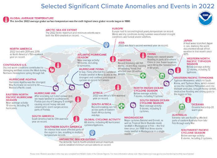 Below are highlights from NOAA’s 2022 annual global climate report: