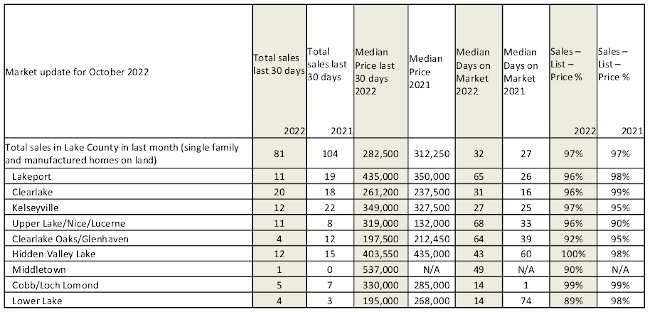 The median sale price of a single family home in Lake County over the last 30 days was $282,500, lower than $312,250 during this time period last year.