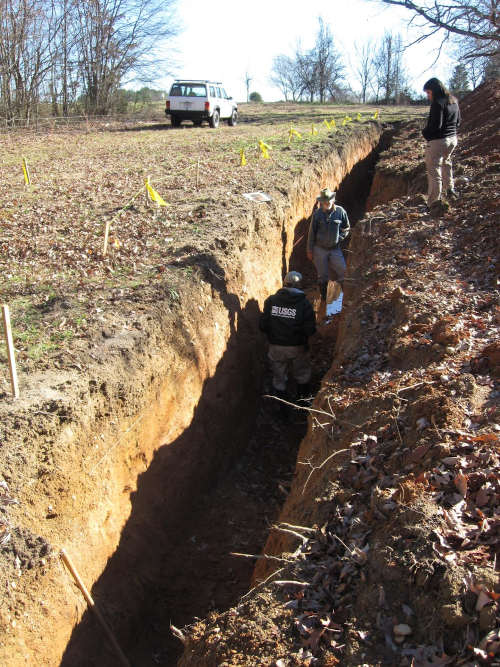 They tally how many past earthquakes they see and determine the number of years separating each earthquake. Those numbers help them determine a recurrence interval, which is the average time between earthquakes at the same site along a fault.