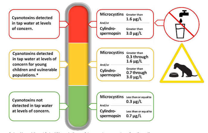 At some levels of cyanotoxin concentration, it is safe to use water to wash hands and shower; at higher levels (>0.3 µg/L), these activities may be harmful to the health of vulnerable individuals.