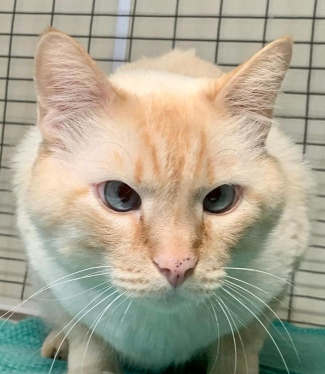 “Flynn” is a 9-year-old male Siamese mix with a medium-length coat.