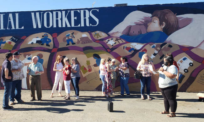Guardado’s poem spoke to the work of the people portrayed in the mural and their contributions.