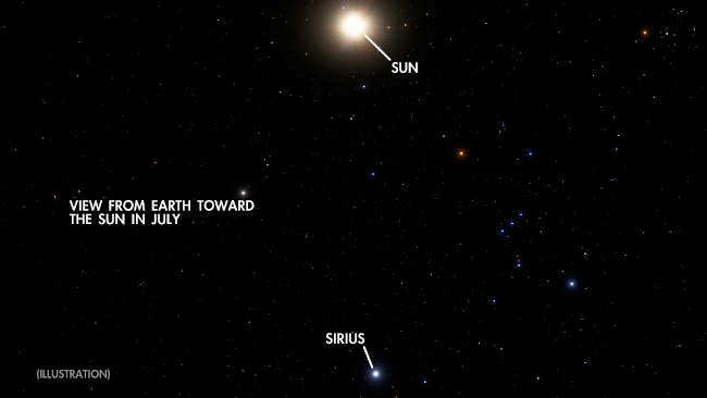 July is a time for sweltering hot weather in the Northern Hemisphere, and you may have heard this time of year referred to as the "dog days of summer." Well that phrase actually dates back to ancient times and has to do with the brightest star in the sky, Sirius.
