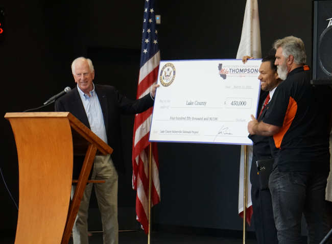 On Thursday afternoon, hundreds of Kelseyville Elementary school students gathered with their teachers and district and county leaders to welcome Congressman Mike Thompson for a ceremonial check presentation in the school’s multiuse building.