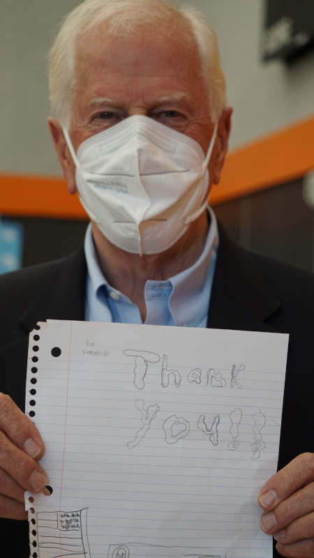 After the event, a young student walked up to Thompson, thanked him and then handed him a thank you note she had drawn herself on lined paper.