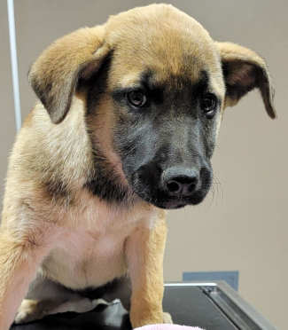 This female German shepherd mix puppy has a short black and tan coat.