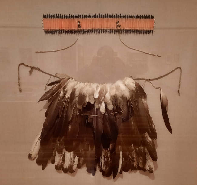 It was the old-style Pomo feathered dance cape and headband on display that inspired Daisyetta Smith, a college student from Eureka, to sing in the exhibit room in the Kashaya Pomo language.