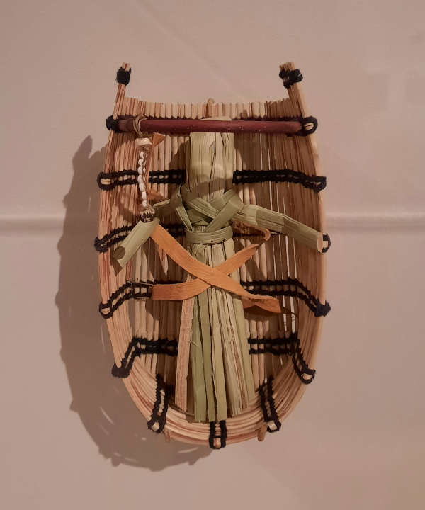 A short documentary film created for the exhibit played on a loop at the entrance to introduce visitors to the Indigenous context of Tavernier’s painting, its roundhouse and the importance of the environment to Pomo basketry.