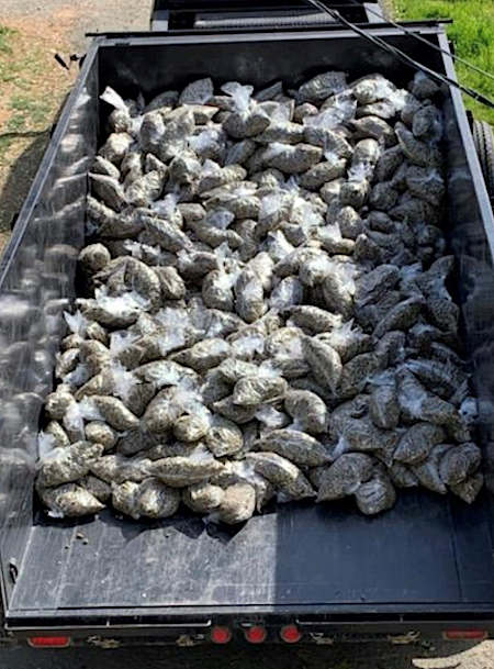 Detectives located and seized a 12 gauge shotgun, 2,326 marijuana plants and approximately 7,600 pounds of processed marijuana, a large majority of which was packaged and ready for sale.