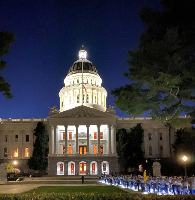The CHP said 142 members of Cadet Training Class I-21 participated in a five-mile run from the Academy in West Sacramento to the California Peace Officers’ Memorial early Wednesday morning.