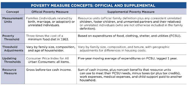 The table below shows a detailed comparison of major concepts between the two measures. (The history of poverty measures in the United States infographic, “How the U.S. Census Bureau Measures Poverty,” and this blog on the difference between SPM and official poverty measures provide more details.)