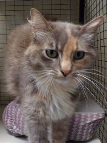 She is in cat room kennel No. 44, ID No. LCAC-A-2457.