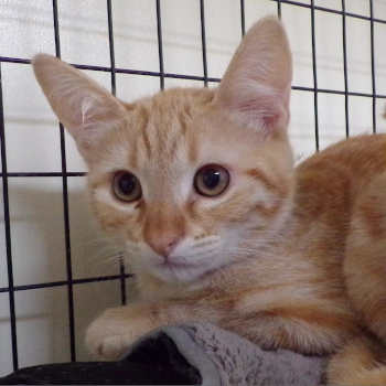 He is in cat room kennel No. 53d, ID No. LCAC-A-2383.
