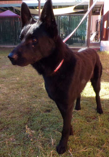 “Nioki” is a 1-year-old female shepherd with a black coat.