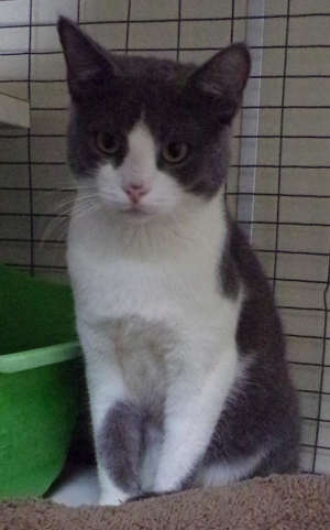 He is in cat room kennel No. 53a, ID No. LCAC-A-2384.