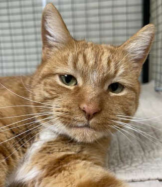 “Punky” is a 4-year-old male domestic shorthair cat with a yellow tabby coat.