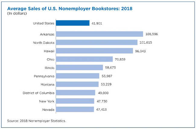 Arkansas reported the nation’s highest average annual sales —$108,596 — per nonemployer bookstore.