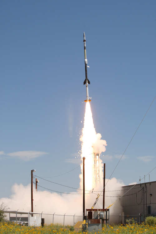 A sounding rocket launches from the White Sands Missile Range, New Mexico. Credits: NASA/White Sands Missile Range.