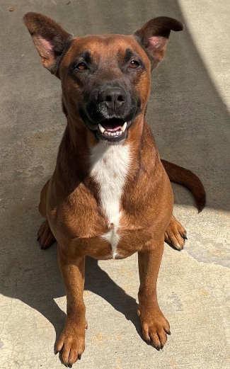 “Rosco” is 3-year-old a male Rhodesian Ridgeback-Shepherd mix with a short tan coat.