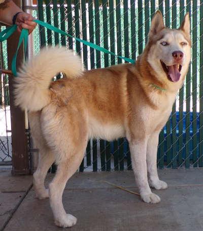 This 2-year-old male husky has a red and cream coat.