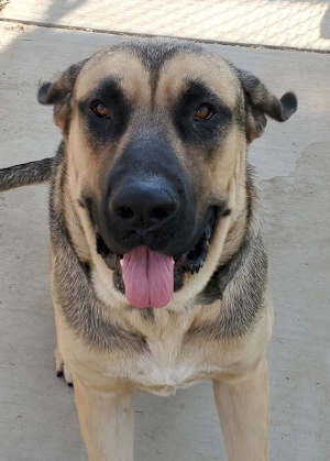 “Butler” is a male German shepherd mix with a brown and black coat.