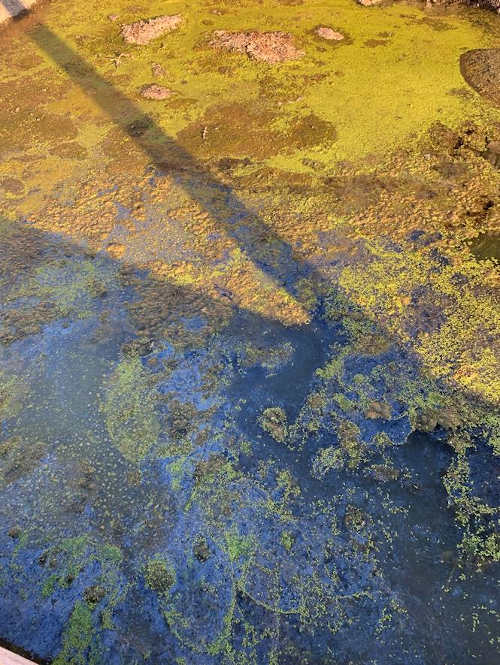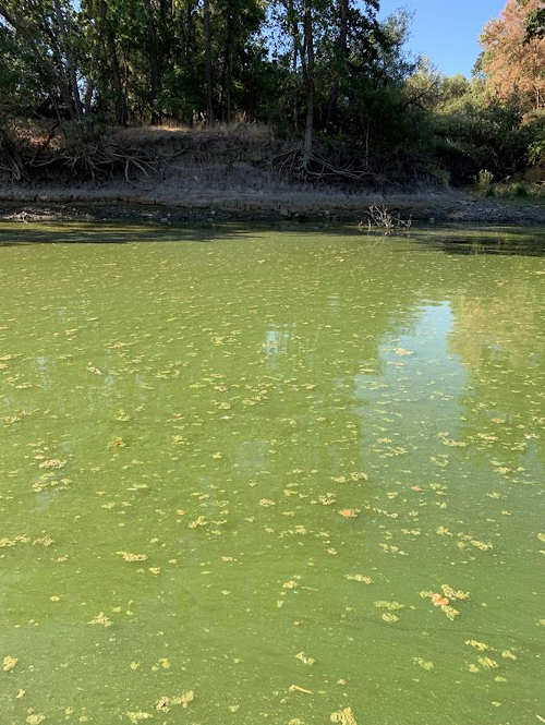 Cyanobacteria at Shady Acres on Cache Creek in Lake County, California. Photo courtesy of the county of Lake.