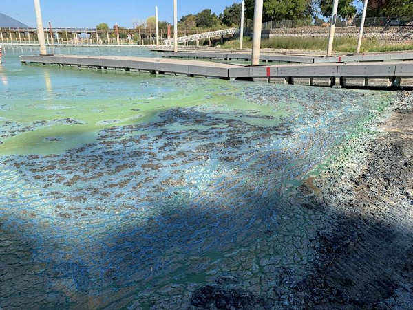 Cyanobacteria blooms in Soda Bay in Lake County, California. Photo courtesy of the county of Lake.