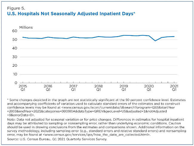 By the first quarter of 2021, inpatient days were 53.6 million (Figure 5).