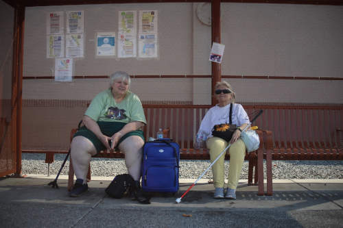 Among those evacuating on Wednesday afternoon were two women, who identified themselves as Liz and Vicki, who Lake County News photographer Gemini Garcia encountered at the bus stop at Walmart.