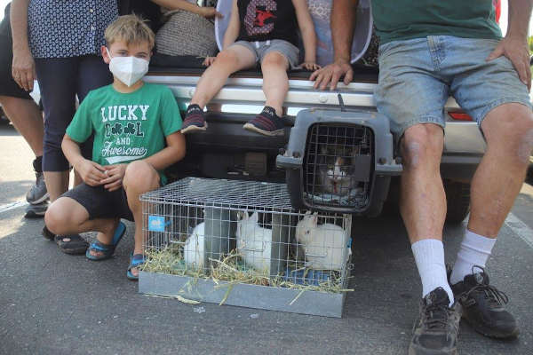 People waited with pets in cages, not knowing when they would be able to return home.