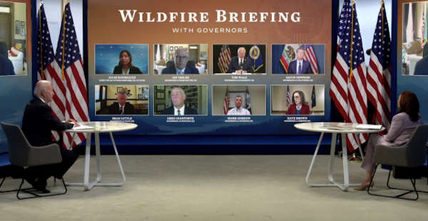 Gov. Newsom, President Biden and Vice President Harris were also joined by six additional governors battling Western wildfires, including Brad Little of Idaho, Tim Walz of Minnesota, Greg Gianforte of Montana, Kate Brown of Oregon, Jay Inslee of Washington and Mark Gordon of Wyoming.