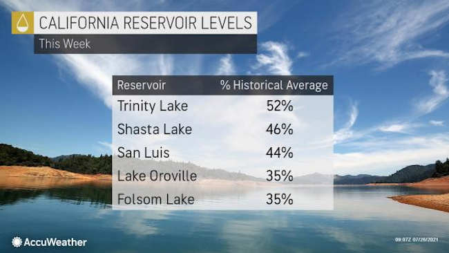 A drought emergency remained in effect for 50 of the 58 counties or 42% of the population in California. Major reservoirs have plummeted to historically low levels in many cases for this point in the season.