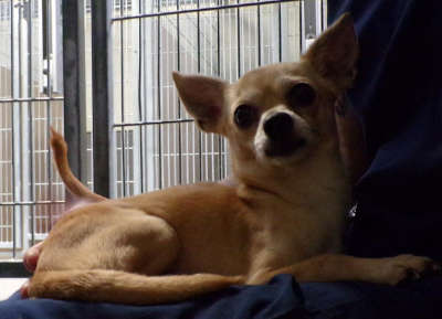 “Tinker” is a 4-year-old Chihuahua with a short tan coat.