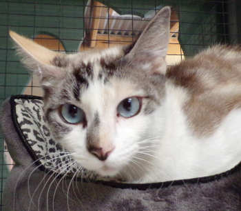 This female Siamese mix is in cat room kennel No. 68, ID No. LCAC-A-963. Photo courtesy of Lake County Animal Care and Control. Female Siamese mix