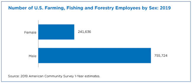 According to the American Community Survey, which shows employment data by sex, women held approximately 24% of the nation’s farming, fishing, and forestry sector jobs in 2019.