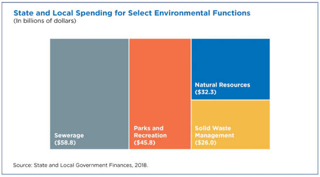 According to the U.S. Census Bureau’s Annual Survey of State and Local Government Finances, public spending to protect the nation’s natural resources jumped from $27.7 billion in 2014 to $32.3 billion in 2018.