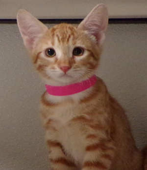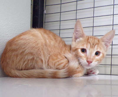 This male yellow tabby kitten has a short coat.
