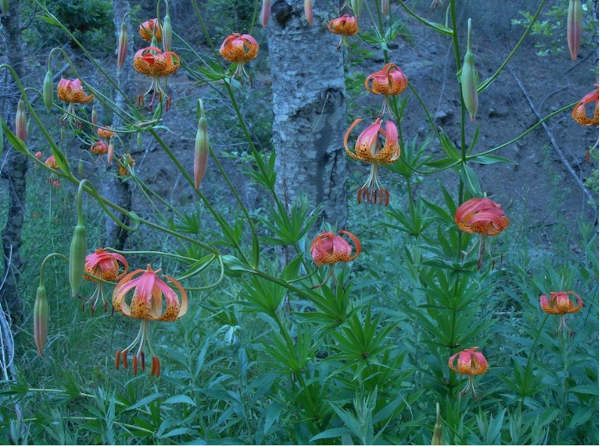 Luckily for the home gardener, leopard and California tiger lilies are widely available commercially, so if you’re lucky enough to see one in the wild, please make sure to let it grow and bloom where it is to feed the native wildlife.