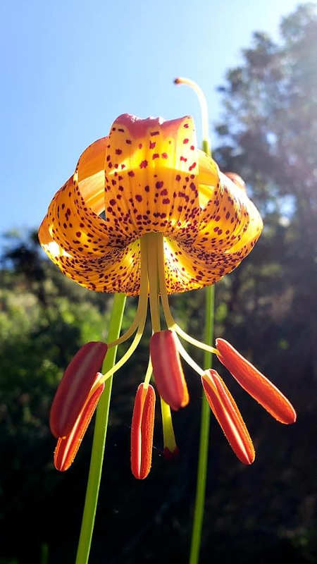 LAKE COUNTY, Calif. — Towering like a beacon along creeks and streams atop stems up to eight foot tall, native Leopard lilies bloom when the days are long and summer is almost here inviting butterflies and hummingbirds to stop and rest for a spell, and the wildflower enthusiast to appreciate.