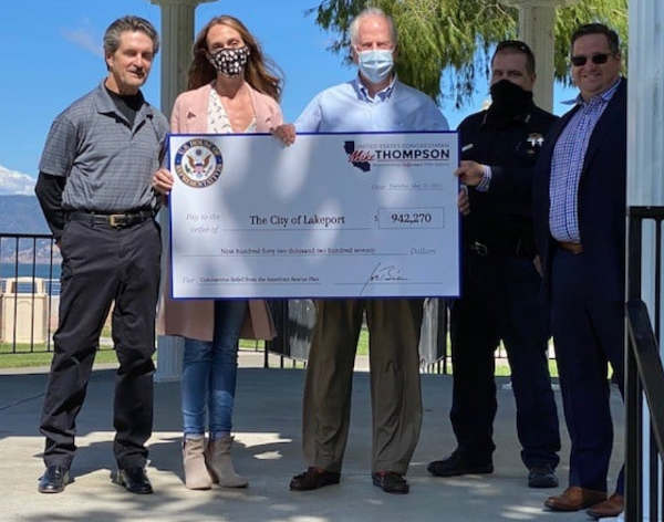 On Wednesday, Congressman Mike Thompson, whose Fifth Congressional District includes half of Lake County, including Lakeport, was in town to present ceremonial checks to city and county officials.