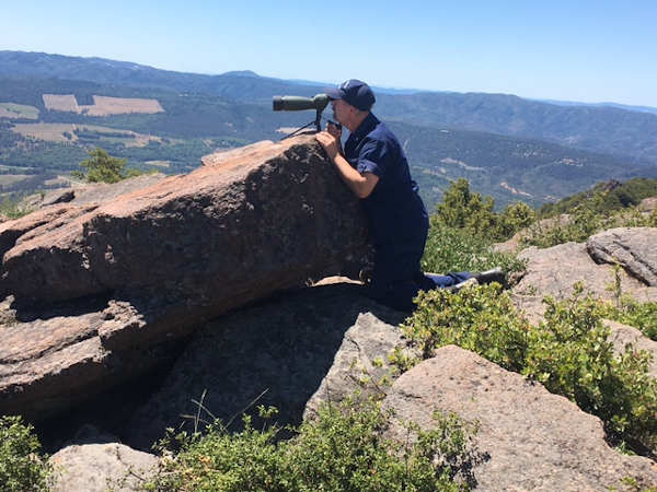 On May 25, Kealey with his son, Nash, a member of the Navy Seabees Reserve to assist him, helper Nikki and Flotilla Public Affairs Officer Dorothy De Lope, drove up Mount Konocti to set up the equipment needed adjacent to the fire watch tower located there.