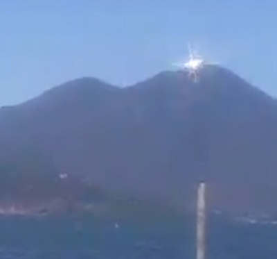 A demonstration was performed by holding up the huge mirror and reflecting it on the hillside toward the location of the first school. The students used their small signal mirrors to sight in on the reflection of the huge mirror.