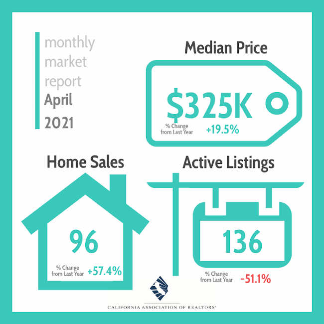 The existing home median price throughout Lake County for April 2021 was $325,000, up 19.5% from April 2020.