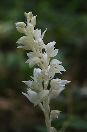 Another orchid that relies on fungus is the phantom orchid, and is the only Cephalanthera species entirely dependent on symbiotic mycorrhizae (fungus) for its nutrition. This mycoheterotrophic orchid has no chlorophyll, so it makes no energy for itself which causes the entire plant to be white, except for parts of the flowers.